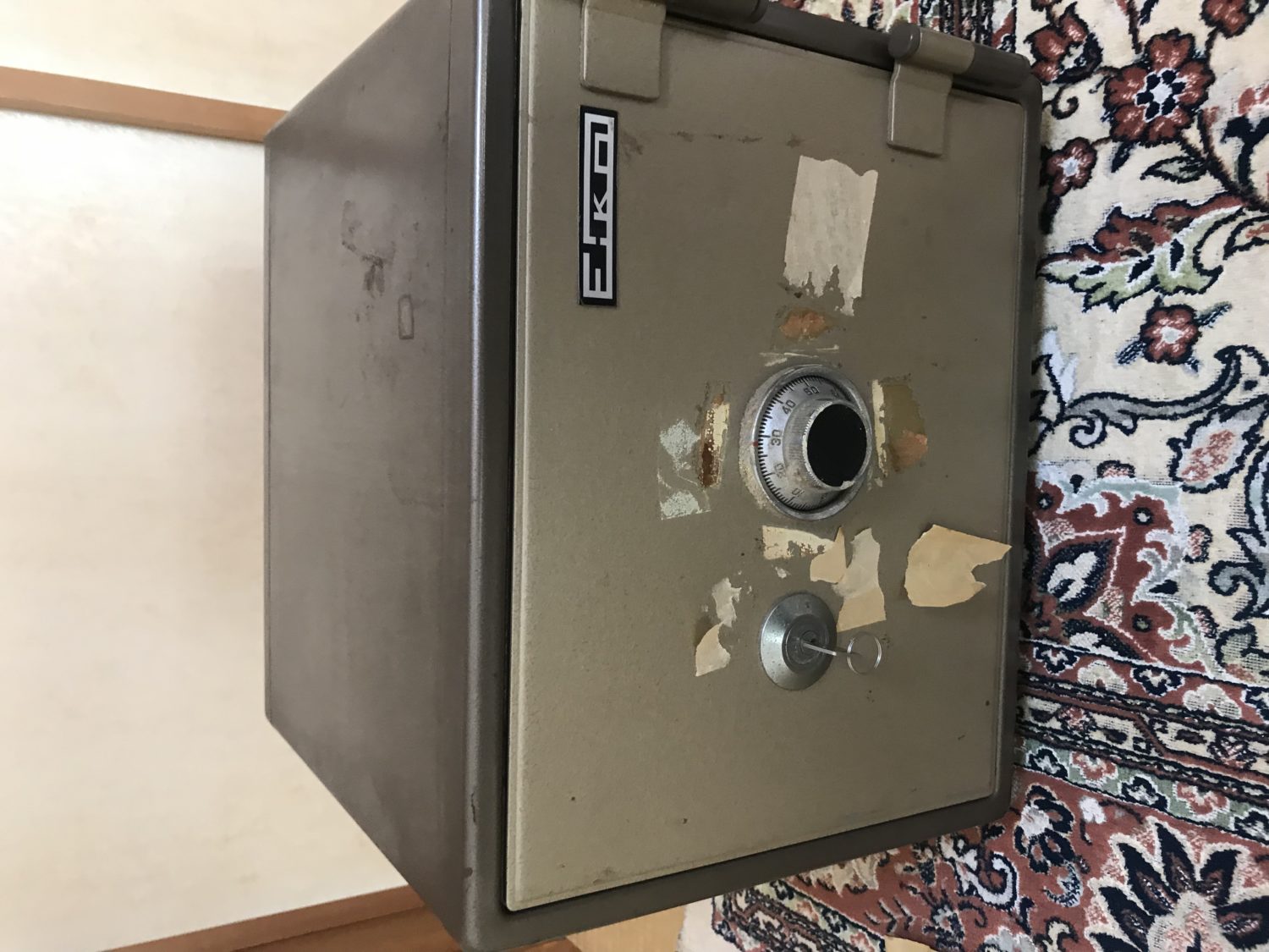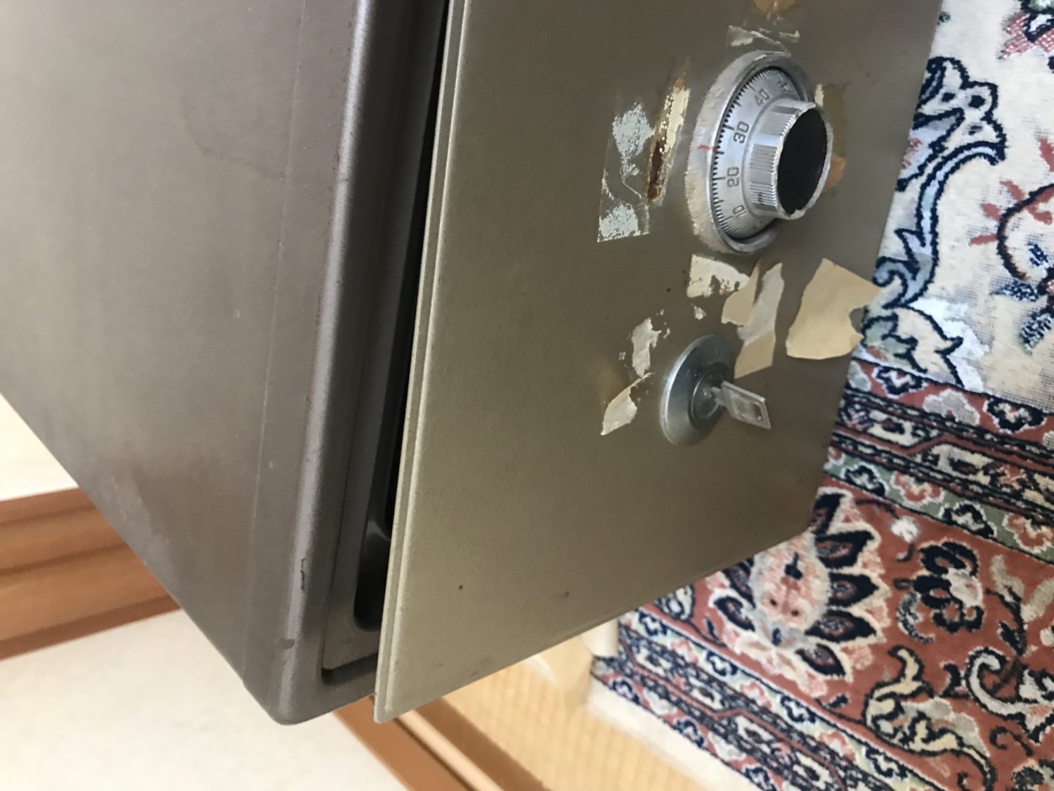 この金庫、ダイヤルをテープで貼って固定していたが、お孫さんが見つけて剥がして回してしまったそうです。。゚(゚´ω`゚)゚。