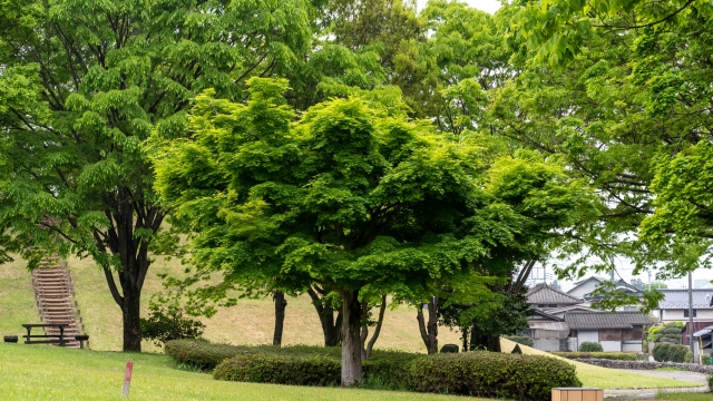 春は、公園内の桜を楽しむことができ、テニスコートやドッグラン、バーベキューを楽しめる広場もあり、家族連れで楽しみながら歴史に触れることができます。